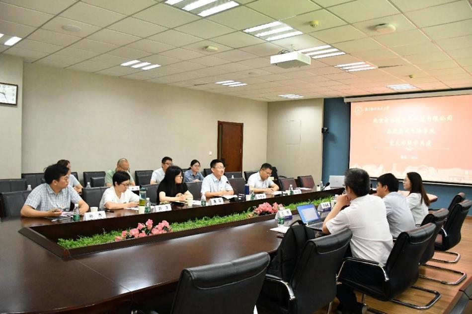 刘伟强热情欢迎了北京智芯微电子科技有限公司的各位同志,并向与会人员介绍了学院的发展历程、师资力量、学科方向等方面的情况,并着重介绍了近年来学院在人才培养和科学研究领域取得的进展和成果。他强调,本次活动能够积极响应党建引领高质量发展的号召,深入推进党建业务双融双促,进一步加强校企合作水平。