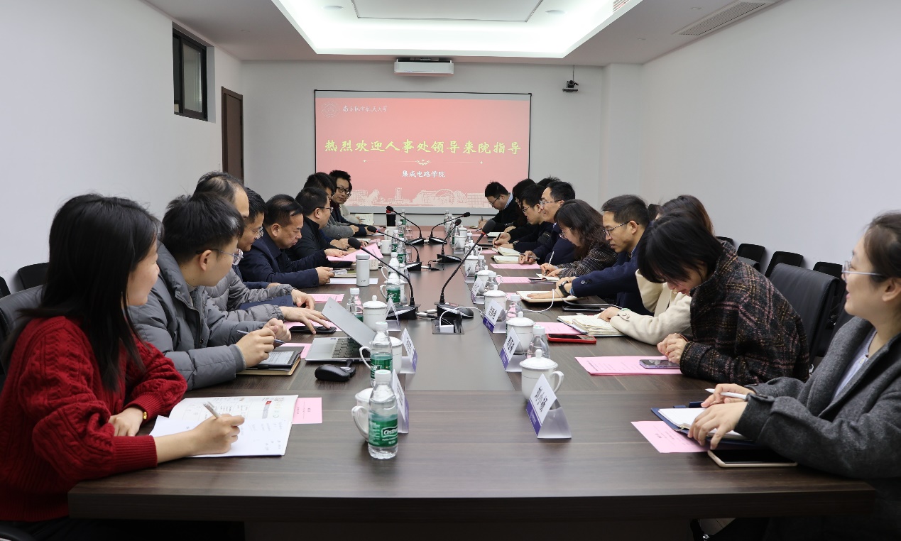 欧美无码 执行院长刘伟强对崔海涛一行的到来表示热烈欢迎,向人事处一直以来对欧美无码 的关心和支持表示衷心感谢。他从学科建设、人才培养、科学研究等方面详细汇报了学院建设发展情况,重点剖析了学院师资队伍面临的现状与问题,并围绕分层引培、柔性引聘、行业交流等方面介绍了学院人事人才工作思路与举措。他表示,学院将认真落实2025年干部教师大会精神,加强高层次人才的引进和培养,注重青年教师培养与集成电路产业的深度融合,努力建设一支高质量、高水平、高觉悟的教师队伍。
