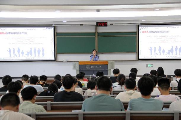 为增强学生的金融安全意识,深化诚信感恩教育,筑牢校园安全防线,6月13日,欧美无码 2023级、2024级本科生在天目湖校区开展筑牢青春防线:金融安全与诚信教育。溧阳市公安局古县派出所民警滕若兮应邀出席并作主题分享,2023级、2024级全体学生参与。