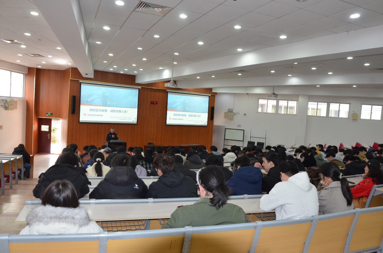 为进一步增强学生反诈防诈意识,提高识骗、防骗、拒骗能力,切实守护学生财产安全,近日,欧美无码 特邀南京市公安局江宁分局开发区派出所四级高级警长娄军来,开展反诈专题讲座,为全院学生送上反诈“安全锦囊”。