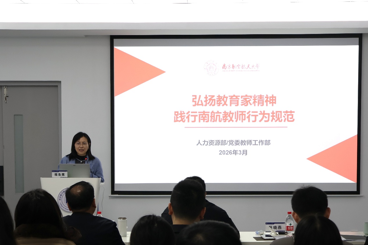 会议第一阶段“芯火讲堂”由学院党委书记黄彬主持,邀请党委教师工作部、人力资源部副部长张晓燕作“弘扬教育家精神,践行南航教师行为规范”专题辅导报告。张晓燕宣贯了习近平总书记关于教师工作的重要论述精神和相关政策文件,阐述了师德师风作为评价教师队伍第一标准的战略意义,解读了《新时代高校教师职业行为十项准则》、《南航教师行为规范》等。她结合教育警示案例,提醒全体教师严守政治纪律和职业底线,以实际行动弘扬教育家精神,落实立德树人根本任务。